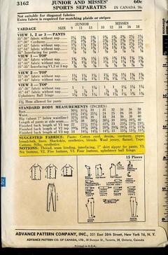 Vintage Pattern Warehouse Vintage Sewing Patterns Vintage Fashion Crafts Fashion 1960 S Sew Easy Advance 3162 Misses Slim Pants And Blouse